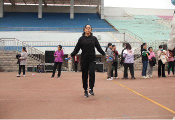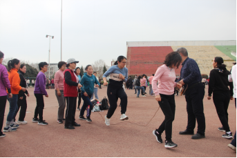 竞赛活动包括集体跳绳、单人跳绳、呼啦圈、踢毽子四个项目。每天工间操刘主席都会带领大家一起练习各个项目。老师们在一片欢声笑语中训练,每每引得员工们驻足停留。每位参赛教工都认真锻炼,积极备赛。